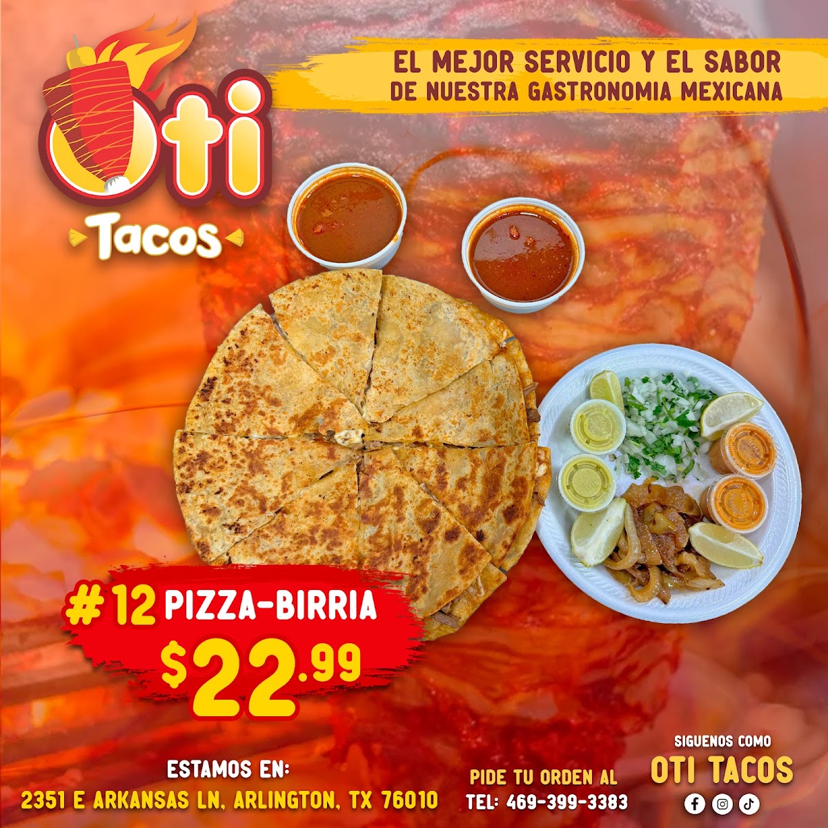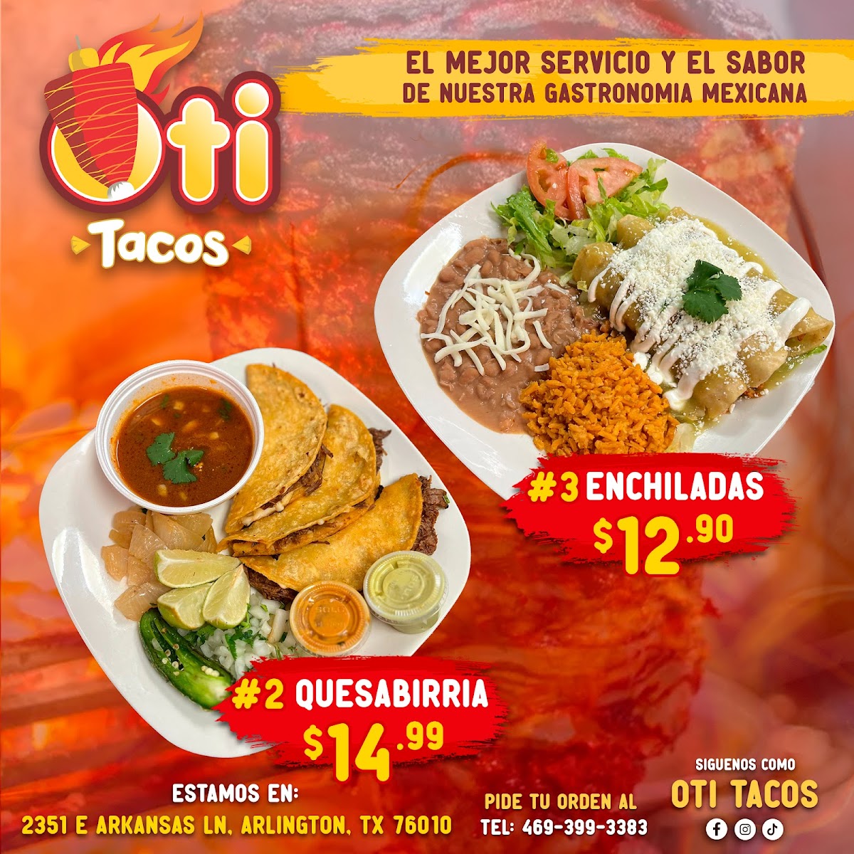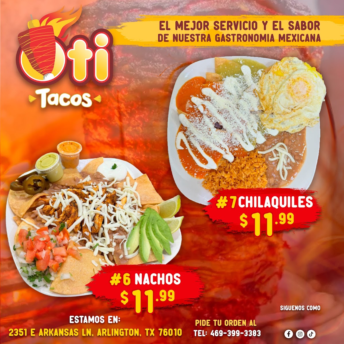 Welcome to Oti Tacos, a hidden gem located at 2351 E Arkansas Ln in Arlington, TX. This vibrant restaurant serves authentic Mexican cuisine that shines with flavor and freshness. The diverse menu caters to all tastes, featuring delightful options such as the #21 Nachos and #29 Especial De Tacos—perfect for both casual bites and hearty meals. Not to be missed are the Quesabirria Plates, praised for their cheesy and crispy texture, making them a true comfort food experience.
