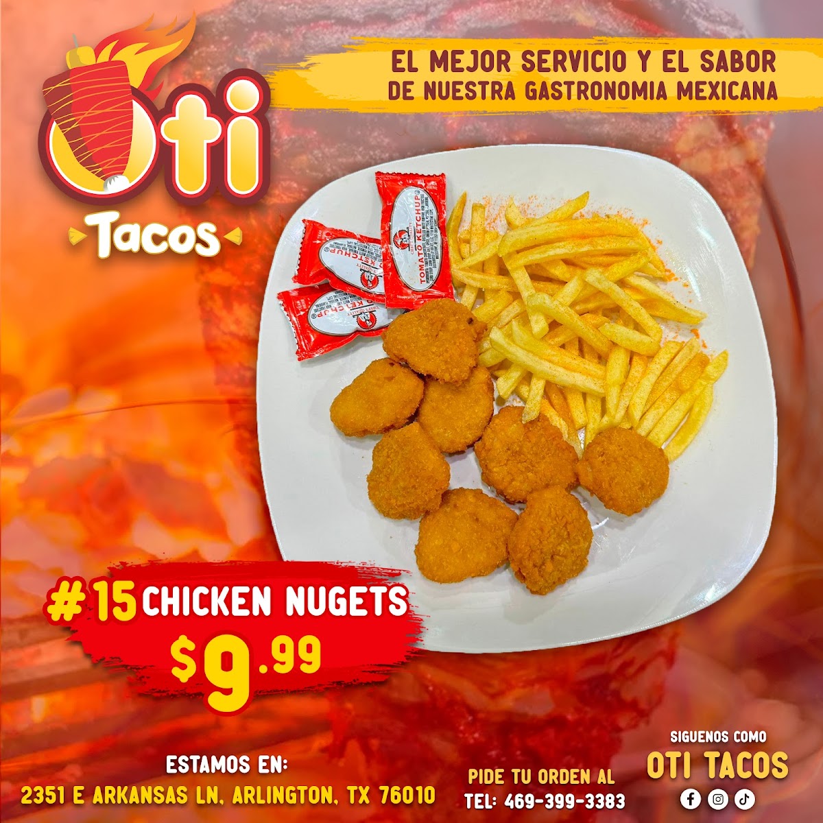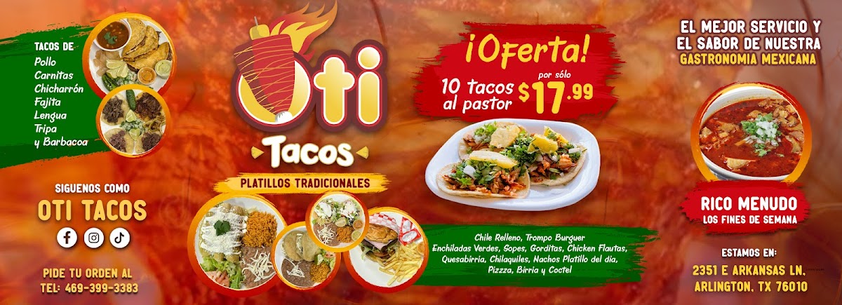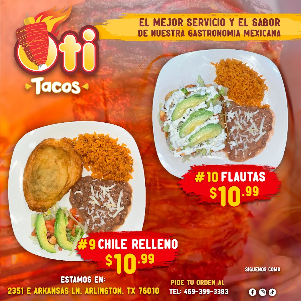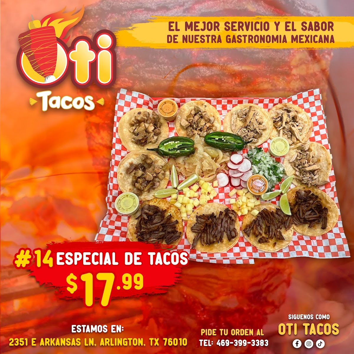 Welcome to Oti Tacos, a hidden gem located at 2351 E Arkansas Ln in Arlington, TX. This vibrant restaurant serves authentic Mexican cuisine that shines with flavor and freshness. The diverse menu caters to all tastes, featuring delightful options such as the #21 Nachos and #29 Especial De Tacos—perfect for both casual bites and hearty meals. Not to be missed are the Quesabirria Plates, praised for their cheesy and crispy texture, making them a true comfort food experience.